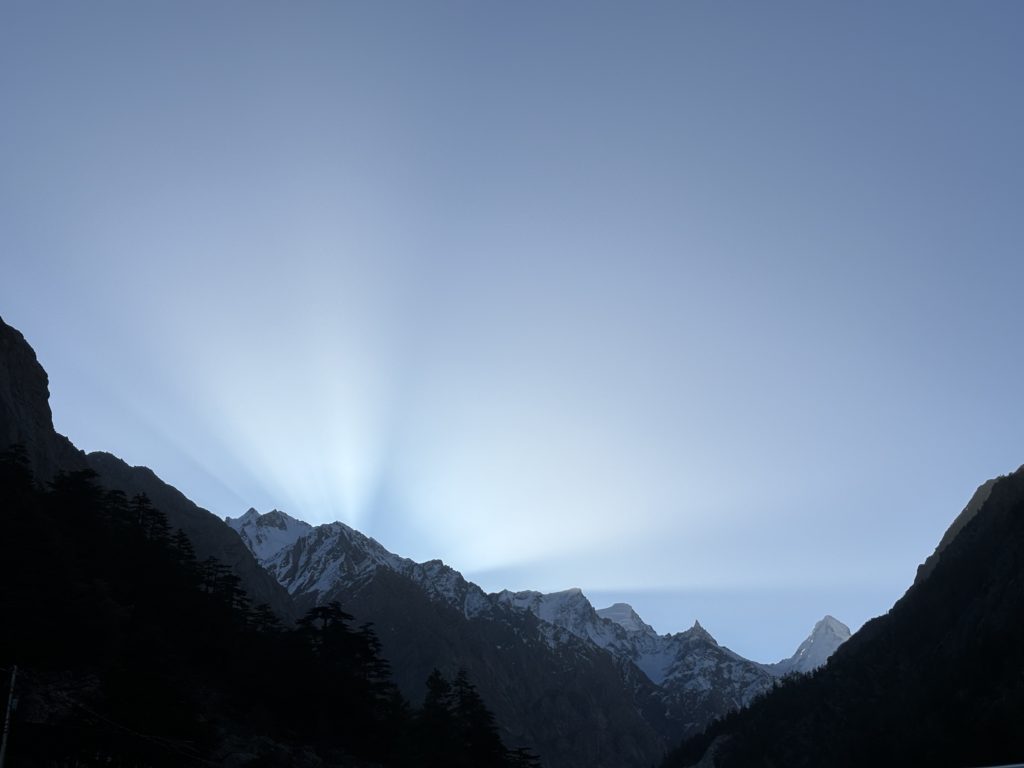 車で行くことのできる最奥はGangotri(ガンゴトリー)標高3400m。ここではそれまでの地とは全く違った雪を被った山々に囲まれた神聖な空気感を味わうことになります。